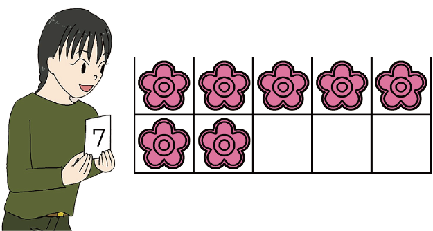 すうじと おなじかずの おはじきを おいてみよう。