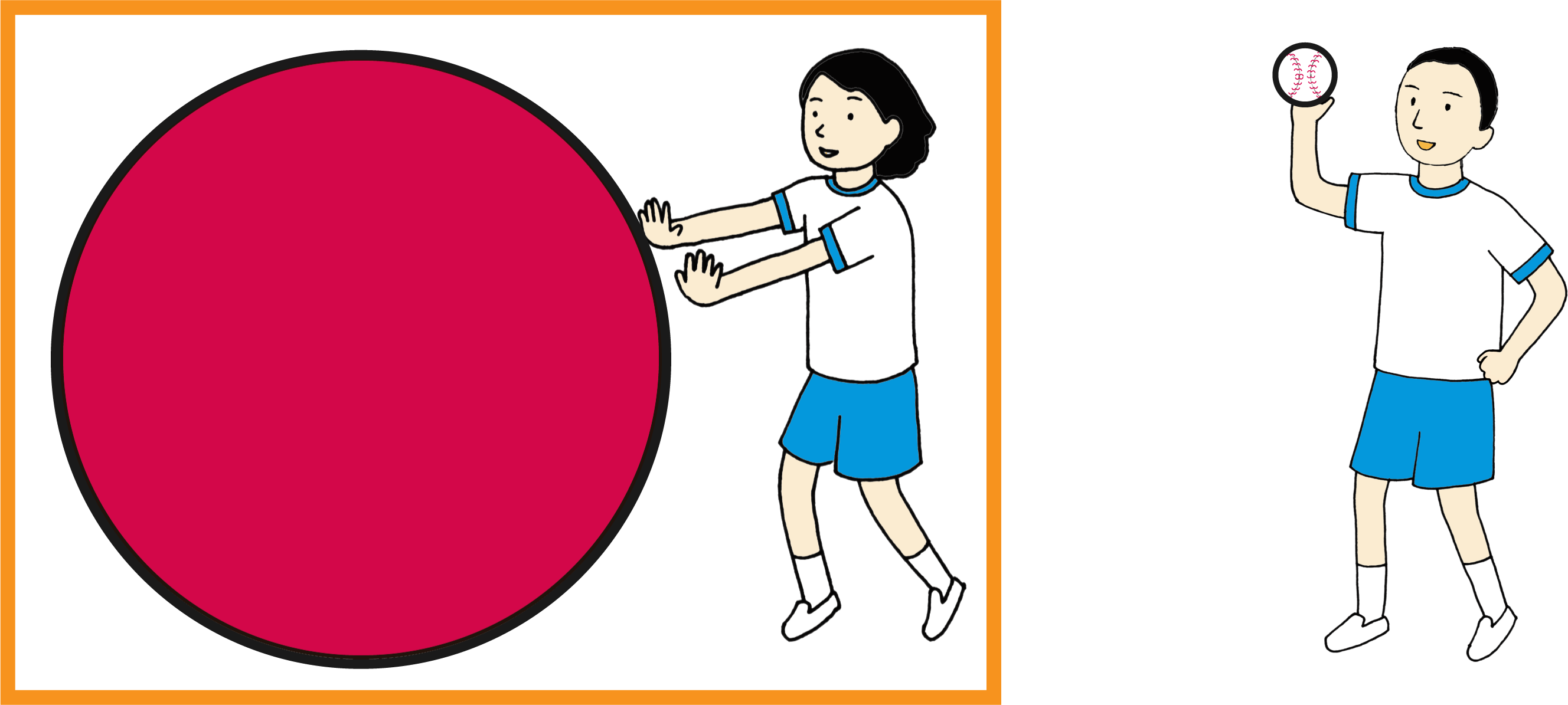 あかいぼーるが やきゅうの ぼーるより おおきいね
