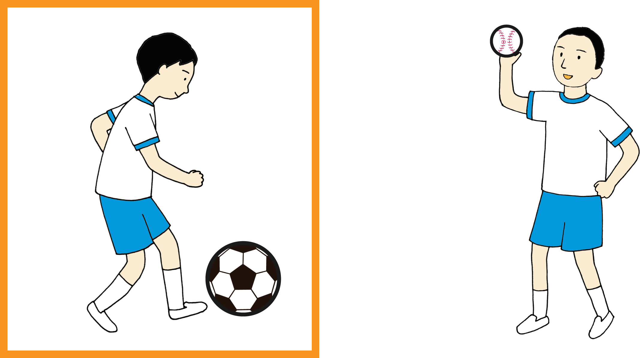 さっかーぼーるが やきゅうの ぼーるより おおきいね