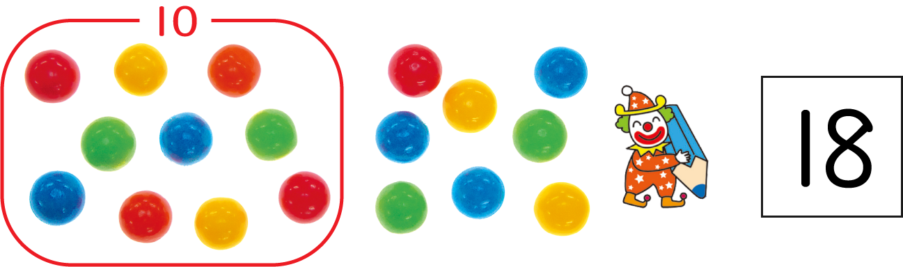 10(じゅう)と 8(はち)で 18(じゅうはち)だね
